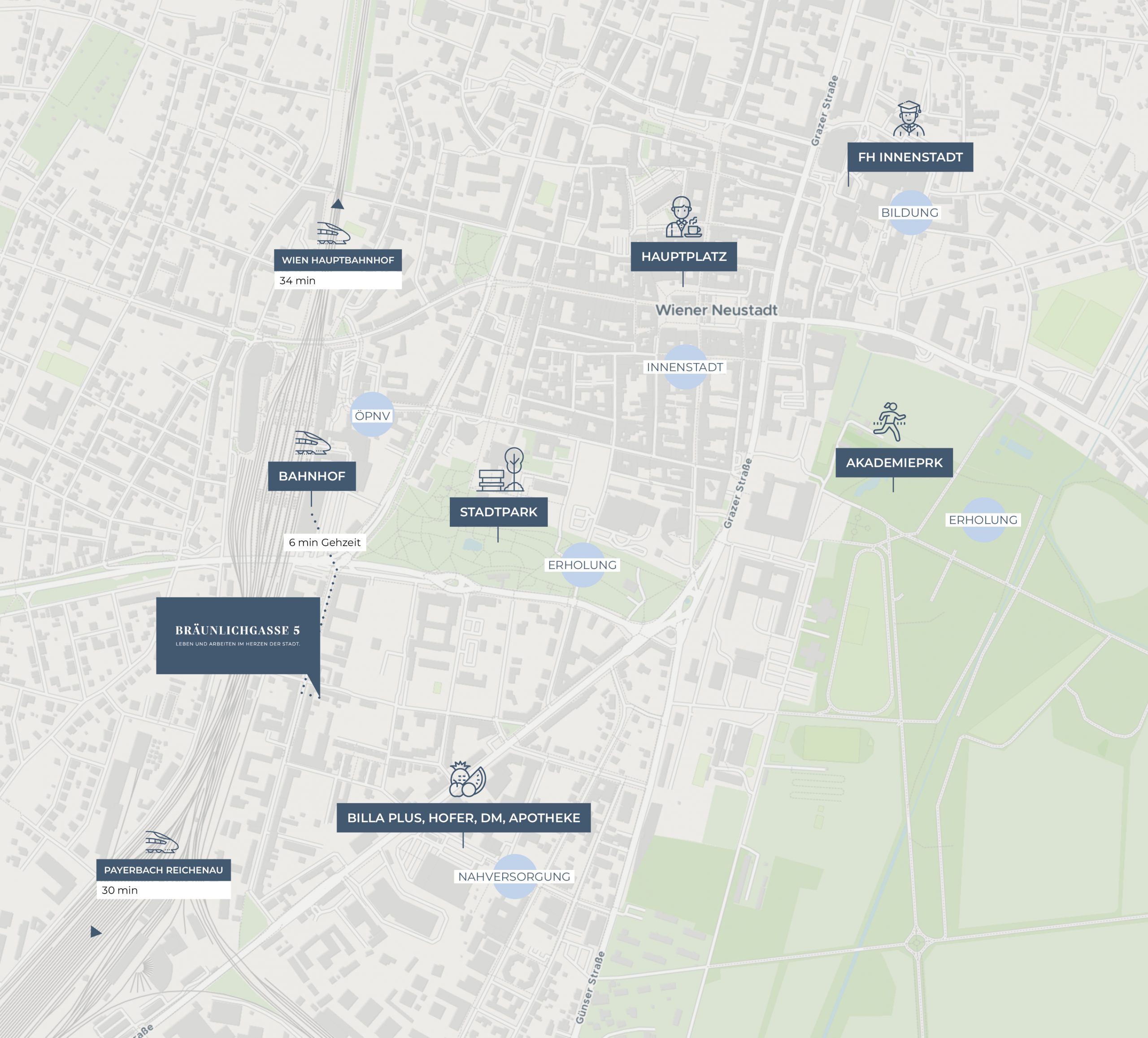 Die Bräunlichgasse überzeugt mit einer Lage, die urbanes Leben mit entspannter Alltagsqualität verbindet. Der Bahnhof ist in nur fünf Minuten zu Fuß erreichbar – ideal für Pendler und Stadtentdecker. Nahversorger, Bildungseinrichtungen, Gesundheitsangebote und vielfältige Freizeitmöglichkeiten befinden sich in unmittelbarer Umgebung. Wer Natur und Erholung schätzt, findet in den nahegelegenen Grünräumen den perfekten Ausgleich. Hier wohnt man ruhig – und dennoch mitten im Leben.